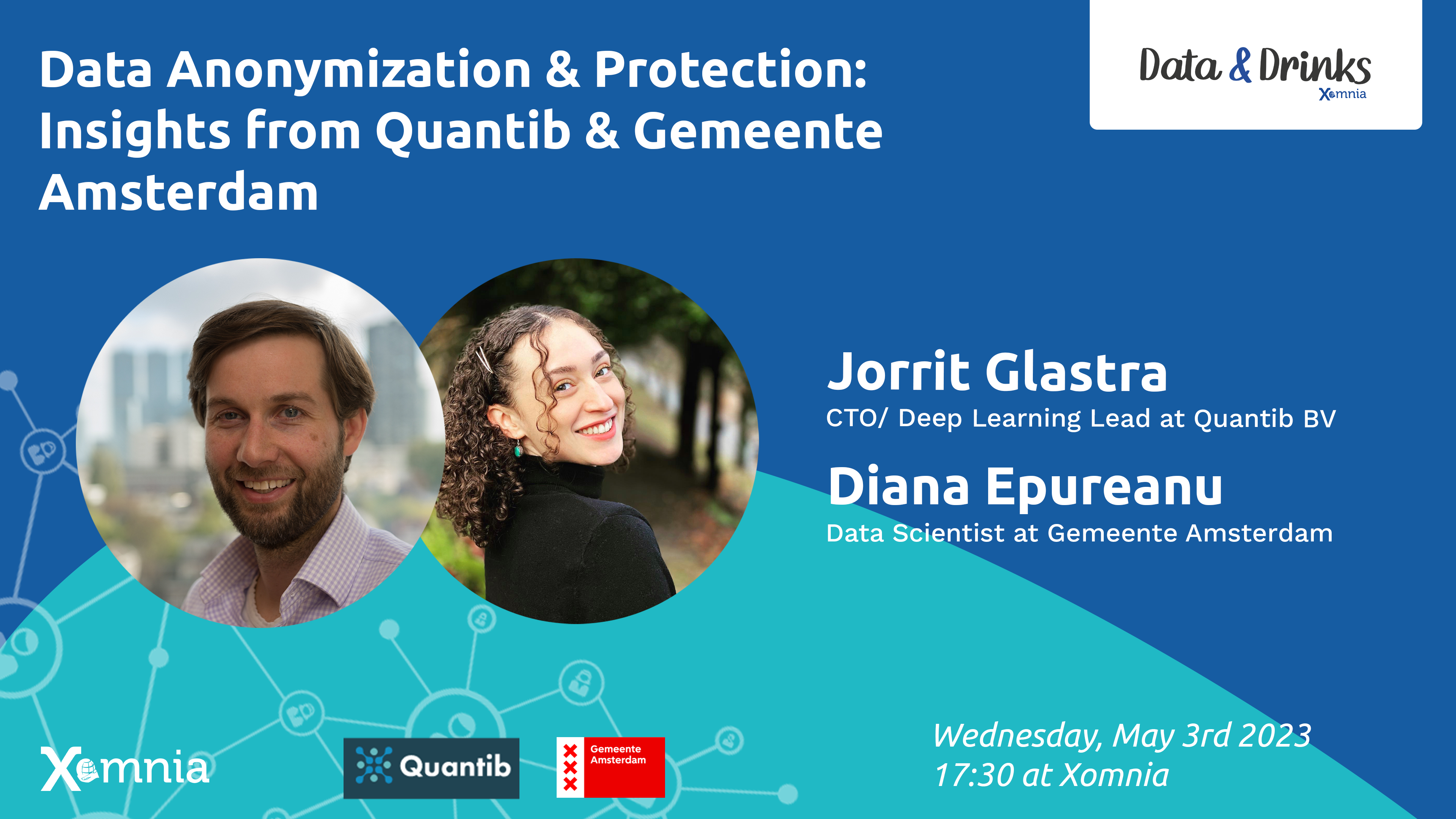 Welcome to May's edition of Data & Drinks monthly event, which focuses on how two vital sectors with advanced data & AI applications ensure privacy and anonymization. Join us on Wednesday, May 3rd at 17:30 at Xomnia's HQ to attend two interesting talks about this topic from Quantib and The City of Amsterdam.